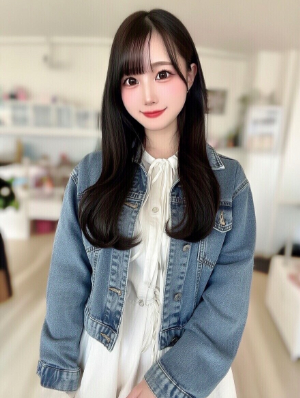 Her sleek black hair perfectly complements her sharp yet cute looks, exuding a sensual, sexy charm. Yet, her smile is childlike and utterly adorable, guaranteed to make men's hearts flutter 彡
